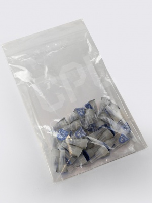 Grip-seal bags with an additional pouch generally suited to putting in written information like a record card, identification label or even another item.