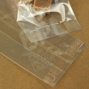 Gusseted polypropylene bags are manufactured in the UK from 40mu high-clarity film.