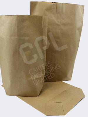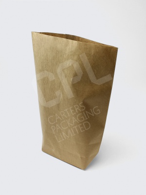 Our machine glazed brown Kraft bags are a variation of the more commonly seen SOS style of bag. These bags are produced without side gussets, and because they are constructed with the familiar block bottom base they still benefit from the ability to open wide similar to an SOS style bag. It's a fairly unique construction of bag, and its shape lends its name to it being known as a rose-shaped block bottom bag. Because of its historic application this style of bag is also sometimes referred to as block bottom flour bags. The ribbed Kraft offers a strong paper, whilst the machine glaze affords the bag a degree of barrier against the elements and damp. As with our PremKraft range, this type of bag would be popular as a grocery bag in the USA. Whilst historically used to bag flour, and still is today, this type of bag is equally suitable for most other dry foods, fruit & veg (makes freshly dug potatoes highly appealing), and is equally competent in bagging groceries, baked goods, garments, haberdashery, DIY items, etc.