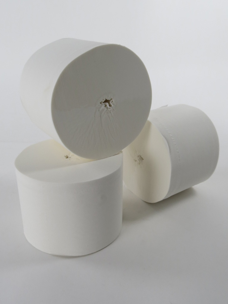 White toilet rolls that are without the inner cardboard core thus usually allowing more sheets per roll and potentially offering a greater yield in relation to transit weight and costs; these overall factors increases the overall value for money. Coreless toilet rolls are usually used in conjunction with coreless dispensers. These are packed in rolls of 36 and available at a competitive price which makes them both a practical and economical option for any business.