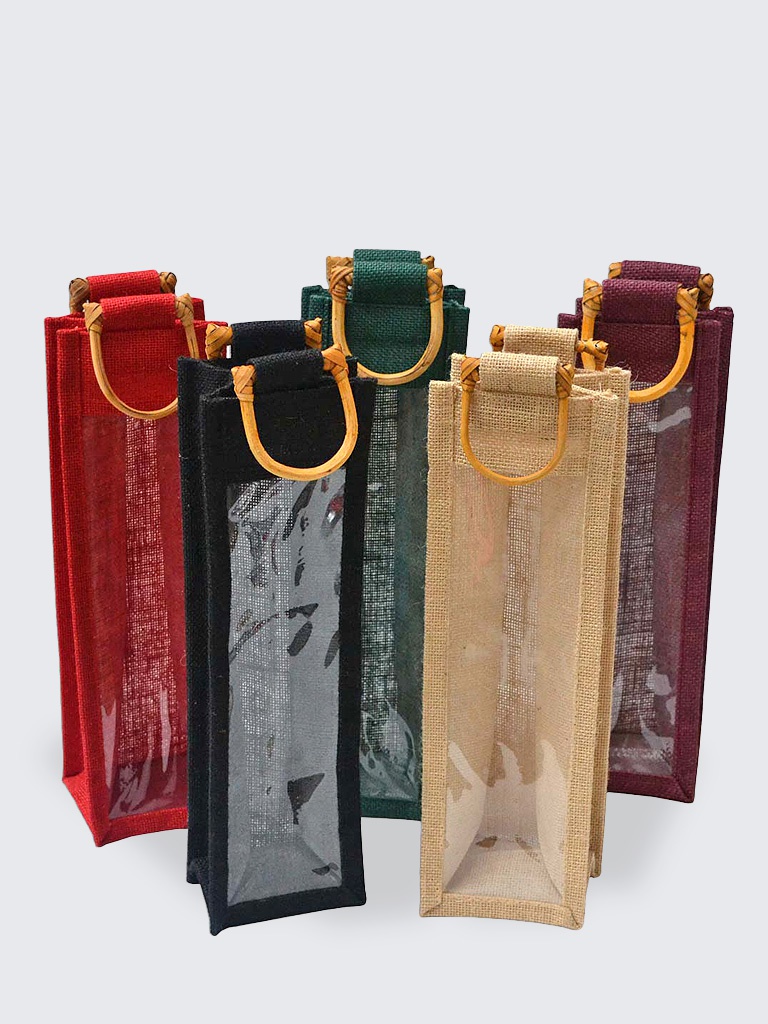 Our singular bottle jute bags come supplied with a waterproof lining and are all ethically sourced. Perfect for any bottle, wine or spirit. An inexpensive way to present your gifts or products.