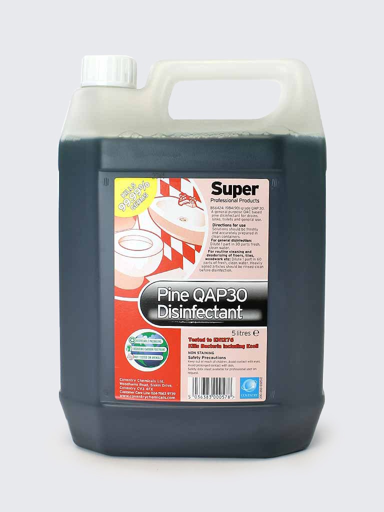 General purpose disinfectant which can be used to clean drains, sinks, toilets and other equipment and to deodorize surfaces such as floors, tiles and woodwork in order to maintain a safe and hygienic workplace. BS 6424(90), Grade QAP 30.