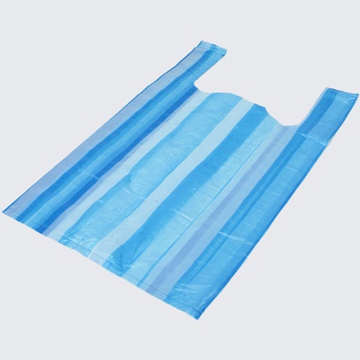 Economical, striped shopping bags made from polythene. Lightweight vest carriers suitable for a variety of products.