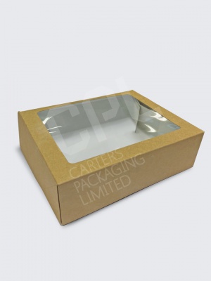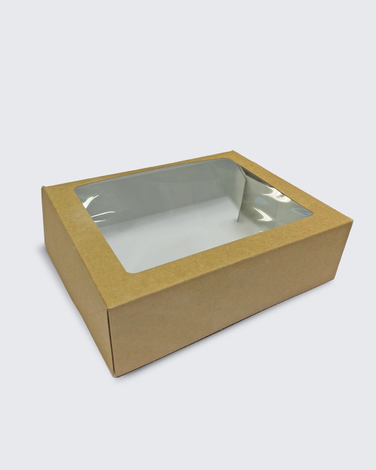 Economy Kraft window cake boxes are cost-effective and versatile in their use. They are not lined but could also be used for salads, cold food products.