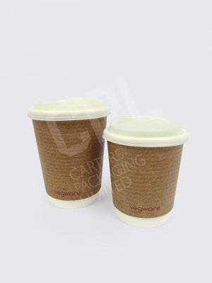 100% Compostable double-wall cups manufactured from a PLA lining (plant-based material). These hot cups which are especially favoured for serving takeaway coffee, boast great thermal properties and are available in 8oz and 12oz capacities with optional compostable lids. All products within this range are trusted Vegware-branded products.