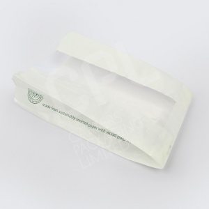 Vegware - Compostable Film Front Bags - A favoured range featuring the trusted brand Vegware's 100% compostable bags. We stock the white glassine (grease resistant) bags which boast a NatureFlex window (manufactured from wood pulp).