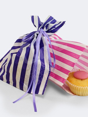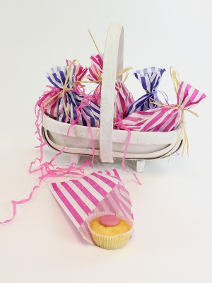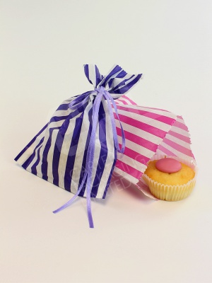 Colourful candy-striped 38gsm paper bags available in either pink or blue. Typically used to package confectionary, we stock a selection of sizes.