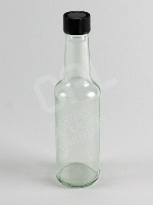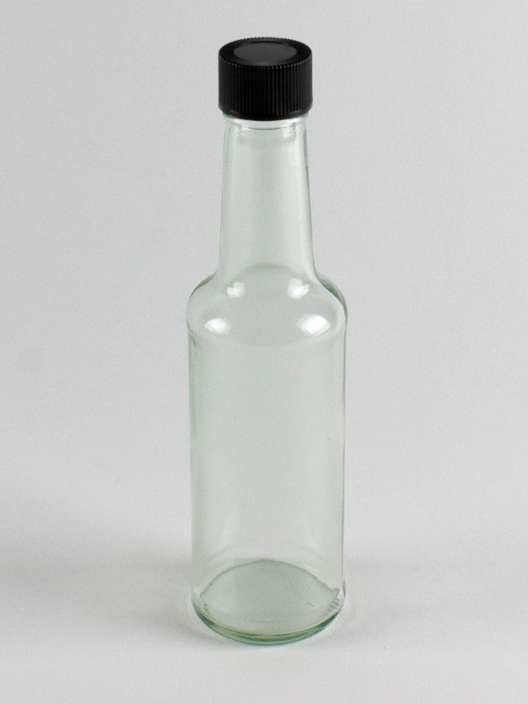 This traditional sauce bottle comes with a tough and durable, black plastic screw-off lid.