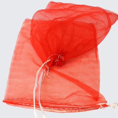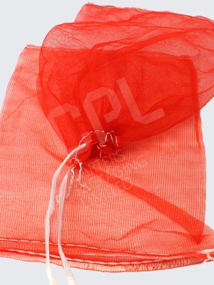 Net bags made from red monofilament fabric which offers high levels of ventilation, clarity of the products within which is often kindling or chopped wood but is also commonly used for packaging produce like vegetables and even shellfish. The tightly packed monofilament results in a strong bag which can slightly deform through stretching but retains its original shape very well. The top of the bag has been fitted with a drawstring which can be used to tighten up the package, thus ensuring the contents are secure, oxygen can still circulate around the produce within and overall the complete package is much easier to carry.