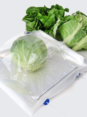 Plastic food-safe bags which have punched holes in both sides are aimed at keeping freshly picked produce in a breathable environment. The bags feature block perforations to achieve a clean tear when quickly removed from the wicket.