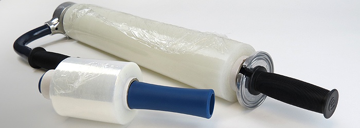 Pallet wrap dispensers for manual handling applications. Telescopic dispenses for larger rolls and plastic handy wrap dispensers for hand held tasks.