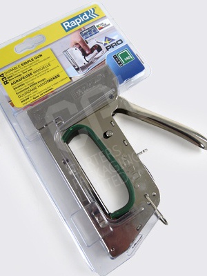 Strong and durable staple gun with an ergonomic design making it comfortable to hold in either hand. This particular stapler (also referred to as a hand tacker) accepts long staples and is designed for the toughest of applications. Features a new easy-to-squeeze trigger with a 3-step force adjuster which saves energy whilst performing to the max.