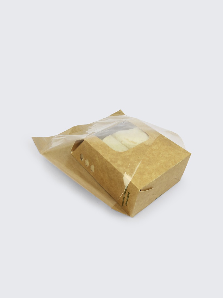 A fundamental product line for the catering industry, the brown Kraft bag with plastic film-front is a go-to choice for bread rolls, cakes and savoury pastries. These bags are not greaseproof, however, they are affordable and get the job done.