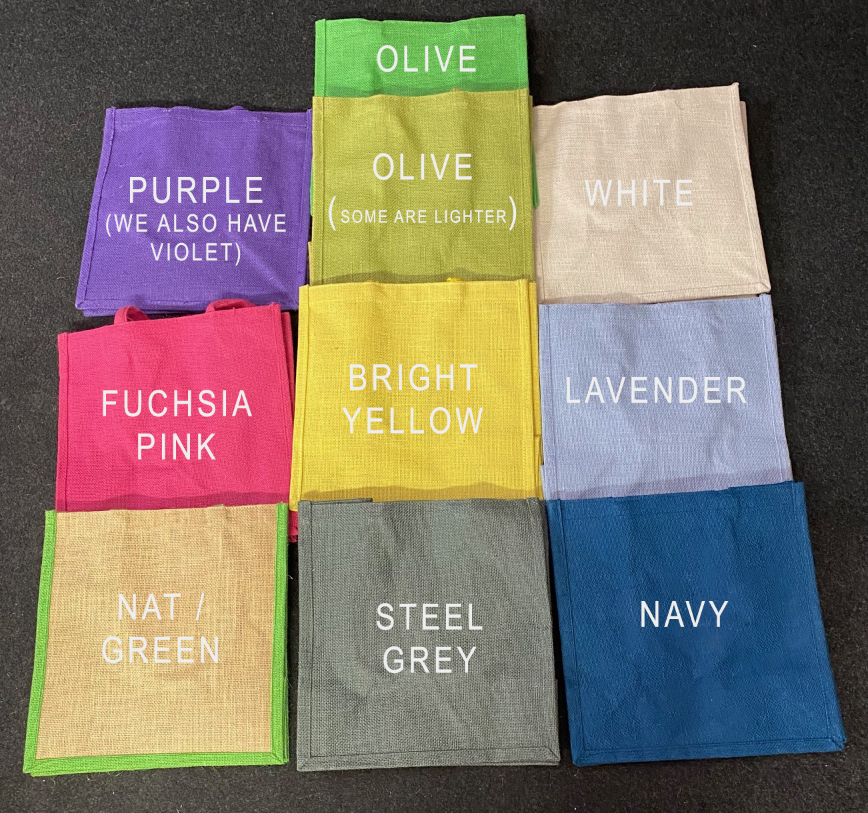 Our custom overprinting service is applicable on a range of our Jute bags. We can print logos, brand names, simplified graphics and messages (1-8 colour print job). Each of these factors will impact the price but all enquiries are welcome and we will happily provide a free no-obligation quote.